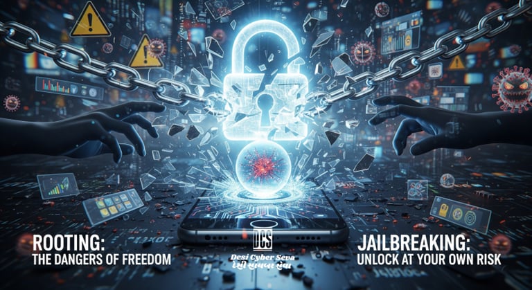 #રૂટિંગ #જેલબ્રેકિંગ #મોબાઈલસુરક્ષા #સાયબરજોખમ #ડેટાચોરી #AndroidRoot #iPhoneJailbreak #MobileSecurity#desicyberseva